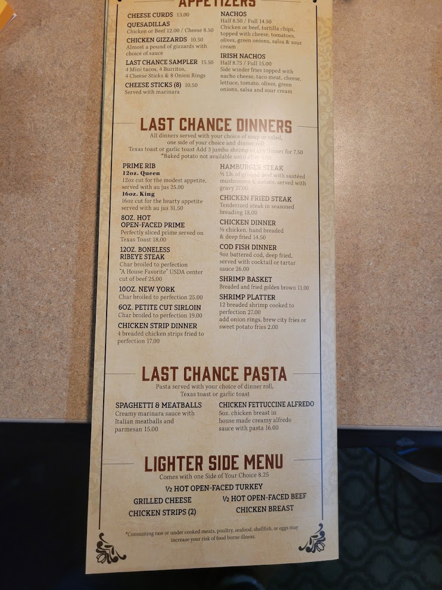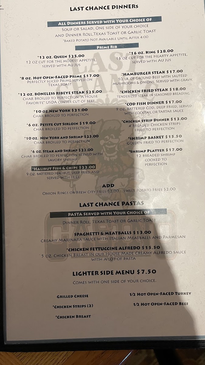 Step into a world of flavor at Last Chance Casino Menu, where every bite is as thrilling as a winning hand. Nestled in the heart of Helena, Montana, this unique spot is not only known for its games but also its mouthwatering dishes. Whether you're here for a quick snack between rounds or looking to settle in for a satisfying meal, you'll find something to excite your taste buds. From hearty appetizers to comforting mains, the menu offers a variety of options that cater to every craving. The atmosphere is relaxed, perfect for enjoying great food with friends or indulging in a solo treat. Whether you're a local or just passing through, there's always something to look forward to on the Last Chance Casino Menu.